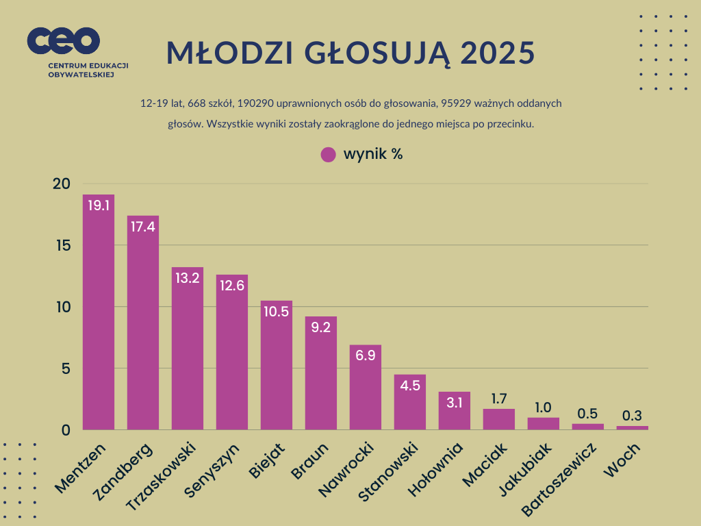„Młodzi głosują” to efektywny sposób na edukację obywatelską i zwiększanie udziału młodych Polaków w życiu publicznym. Dodatkowo uczniowie, organizując w swoich środowiskach działania profrekwencyjne, przyczyniają się do większej aktywności obywatelskiej dorosłych Polaków.